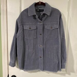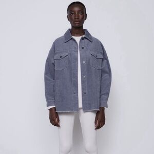 Zara Gray Blue Oversized Shacket Corduroy Jacket Raw Hem Size XS
