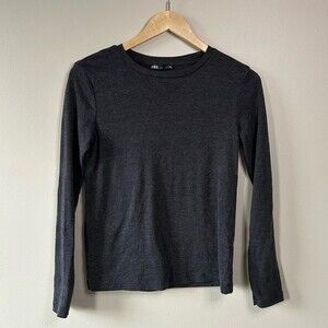 Zara Gray Crewneck Basics Long Sleeve Shirt Size Small