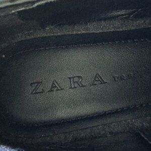 These Oxford shoes from Zara are constructed in gray felted fabric with black rubber bottom sole. They feature a slightly square toe box, lace up blucher vamp closure, back heel pull on tab, black piping and a platform track sole silhouette. These 90s, classic, office, corporate goth, whimsigoth, wednesday addams, menswear inspired, cosplay, neutral, avant garde vibes.