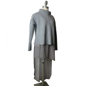 Zara Gray High Neck Long Sleeve Sweater with Sheer Overlay Long Tank Size Medium