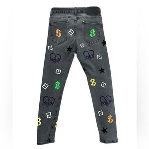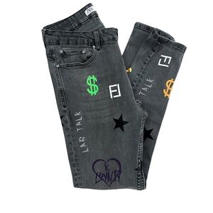 Zara Trendy gray skinny jeans with vibrant multicolor designs. Perfect for a modern look. Size 34 Good condition 7/10 Slim fit