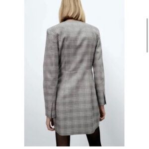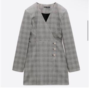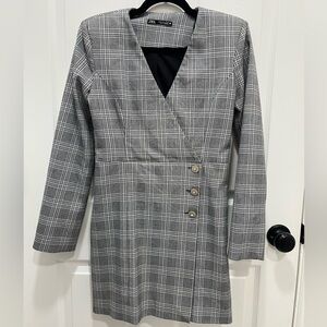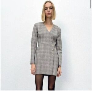 Zara Gray Plaid Buttoned Wrap Mini Dress Small Blazer Rhinestone Workwear