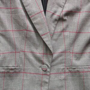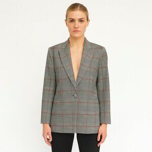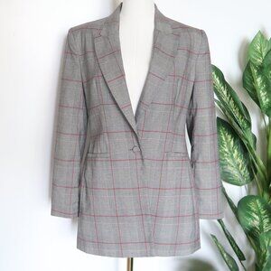 Zara Gray Plaid Checkered Single-breasted Blazer Red Windowpane Classic Office M