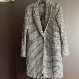 Used good condition Stylish Zara pea coat with a classic plaid pattern. Features a tailored fit and notched lapels. Perfect for a chic, timeless look.