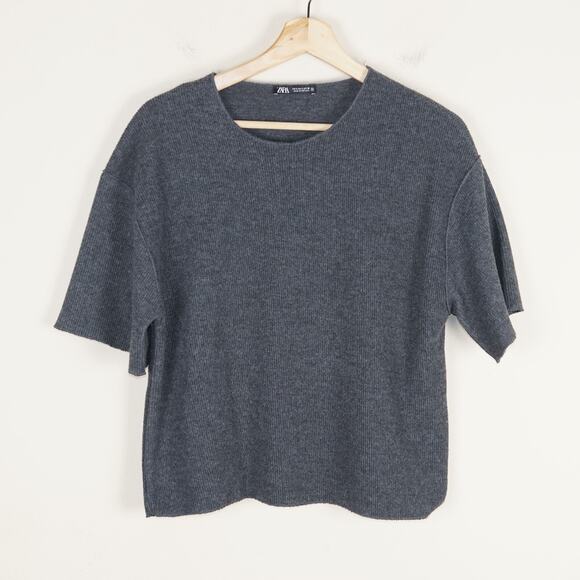 Zara Gray Soft Nit Boxy Ribbed Short Sleeve Top Women Sz S