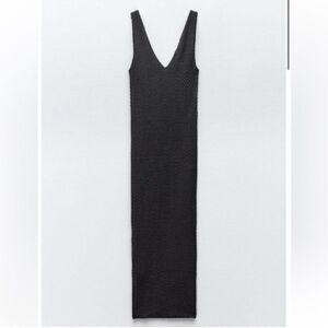 Zara Gray Textured Fitted Midi Dress, Pullover styling, Stretchy. Approx measurements Pit to Pit 18", Stretched 20", Length 52.5". NWT