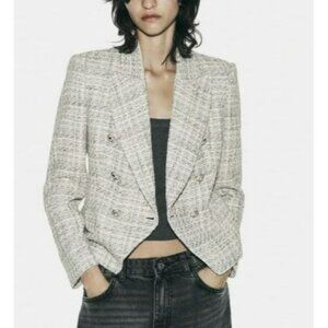 Zara Gray Tweed Double Breasted Blazer Womens XS Work Career Office Jacket