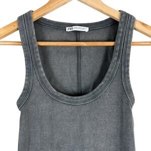 Zara Gray Washed Effect Ribbed Bodycon Sleeveless Mini Dress