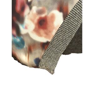 Zara Gray With Satin Watercolor Floral Overlay V-neck Knit Sweater Size Small
