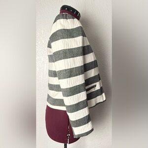 Stylish Zara blazer with bold black and white stripes. Perfect for a modern, chic look.