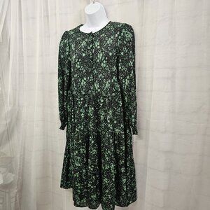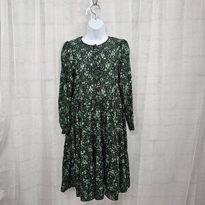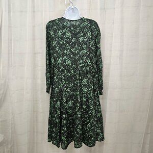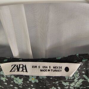 Zara Green Black Floral Peasant Dress Boho Midi S