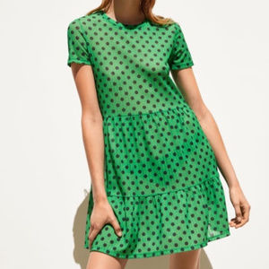 Zara Green & Black Polka Dot Tiered Sheer Dress in MEDIUM