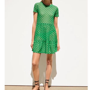 Zara Green Black Polka Dot Sheer Dress MEDIUM NWT