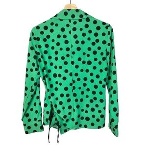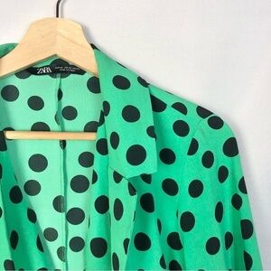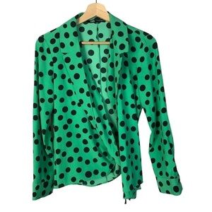 Zara Green & Black Polka Dot Wrap Front Long Sleeve Blouse XS