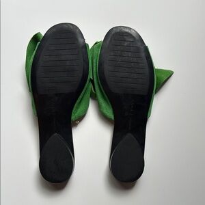 Embrace a touch of elegance with Zara's green bow sandals, featuring a striking oversized bow detail. These minimalist slide sandals offer a comfortable flat design with an open toe, perfect for casual outings. The vibrant green hue adds a lively pop to any ensemble.
