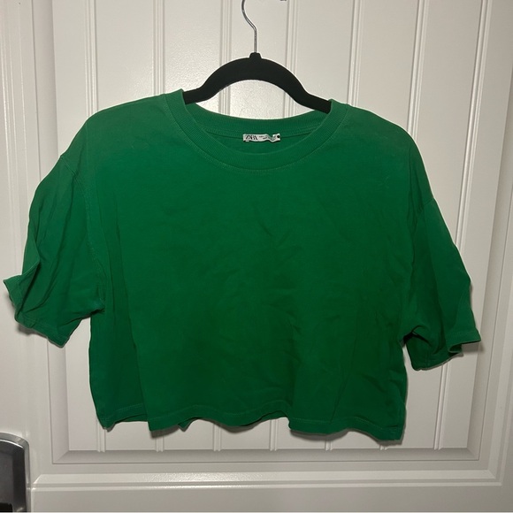 Zara Green Cropped Short Sleeve Crew Neck Top. In great preowned condition. No visible signs of wear. Feel free to make a reasonable offer through the offer button!
