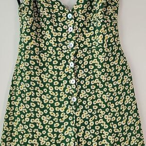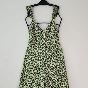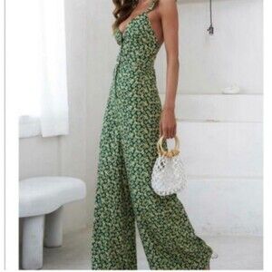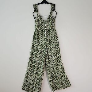 Zara Green Ditsy Floral Button Front Smocked Back Wide Leg Jumpsuit M (T20)