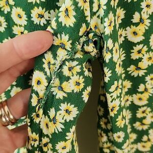 Zara Green Ditsy Floral Button Front Smocked Back Wide Leg Jumpsuit M, in good condition. It has been fixed between the legs see pics.