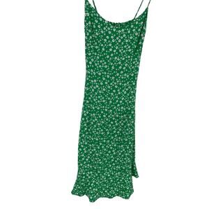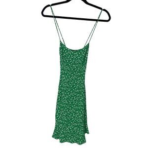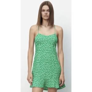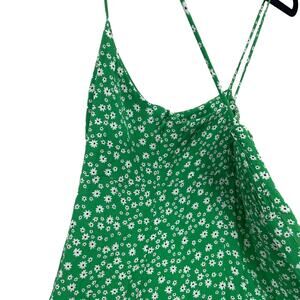 Zara Green Ditsy Floral Print Criss Cross Back Short Mini Dress Womens Medium