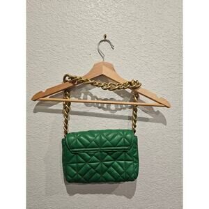 Zara Green Faux Leather Rectangle Medium Size Gold Chain Shoulder Bag