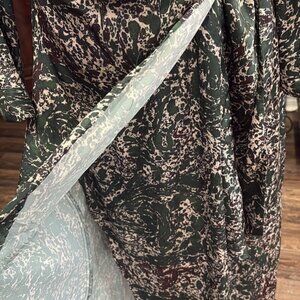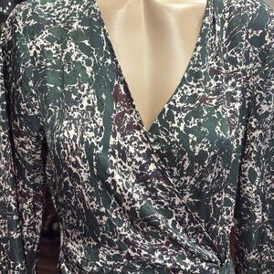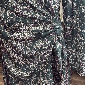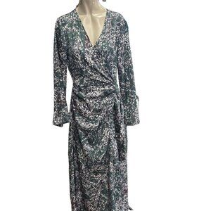 This elegant green faux wrap dress is perfect for any occasion. The intricate design adds a touch of sophistication to your wardrobe.