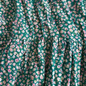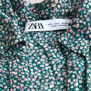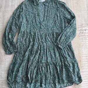 Zara Green Floral A-Line Mini V-Neck Collared Dress Long Sleeves Size Large