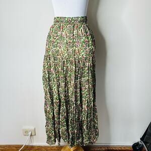 Zara Green Floral Tiered Peasant Maxi Skirt