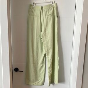 Experience effortless style with these Zara trousers in a refreshing green hue. Crafted with a high-waisted design, they offer a relaxed fit that flows elegantly from the waist down. The lightweight fabric ensures comfort and a sophisticated drape, making them a versatile addition to any wardrobe.