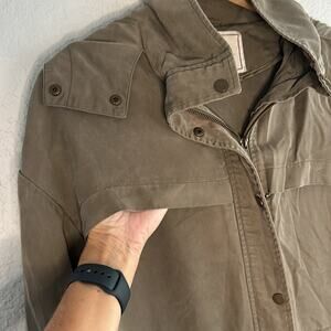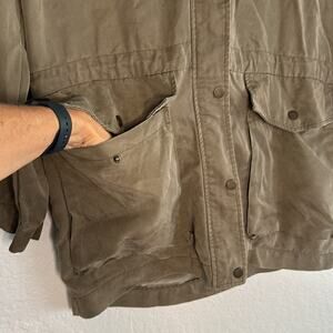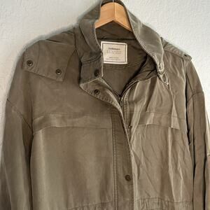 Zara Green Jacket 100% Tencel Gorpcore Oversized Hooded Zip Snap Front Grunge
