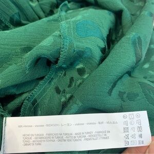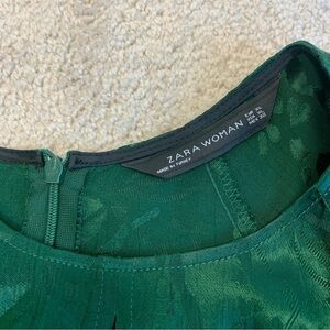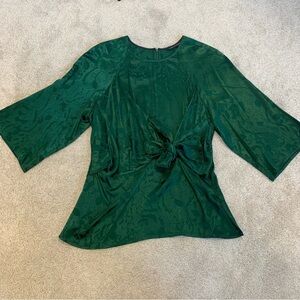 Zara Green Jacquard Front Knot Blouse XL NWOT