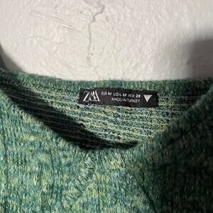 Green Zara knit crop top marled knit with bra lingerie details