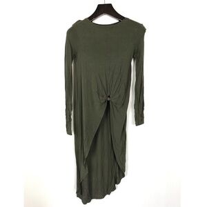 Zara Green Knotted High Low Shirt Dress Tunic Top Long Sleeve Women's Size Small Great pre-owned condition Bin M