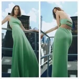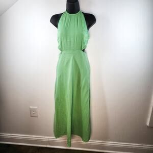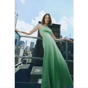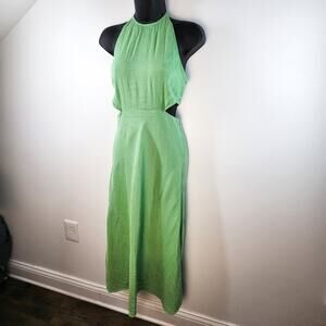 Zara Green Linen Blend Cut Out Maxi Dress Size Small Summer Vacation Resort Cute
