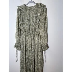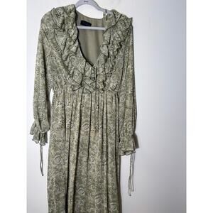 Zara Green Long Sleeve Deep V Maxi Dress Sz L