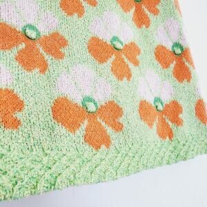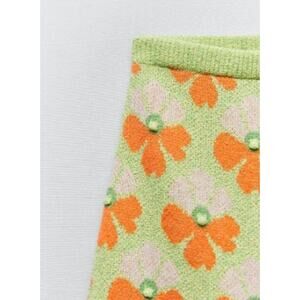 Zara Green Floral Print Jacquard Mini Skirt Stretch Fit Sweater Skirt Vintage Style 70's y2k Print High-waisted mini skirt with elastic waistband. A-line silhouette. Textured Knit