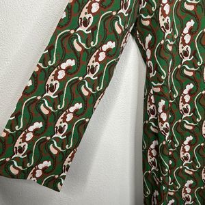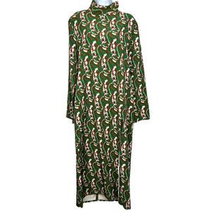 Zara Green Paisley Print Long Sleeve Mock Neck Side Slit Midi Dress XXL Blogger