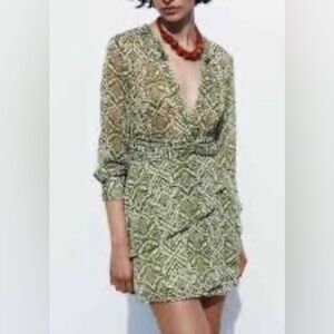 Elevate your style with this chic green patterned dress. Perfect for any occasion, this dress offers a flattering fit and eye-catching design.