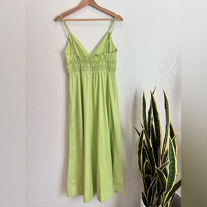 Zara Green Poplin Midi Dress Pockets Size Medium