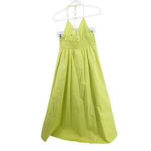 Zara Green Poplin Smocked Waist Midi Dress Size XL Boho Cottage Vacation Blogger Favorite Wedding Guest