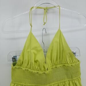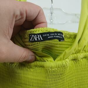 Zara Green Poplin Smocked Waist Midi Dress Size XL Boho Cottage Vacation Tea