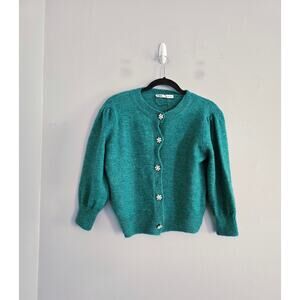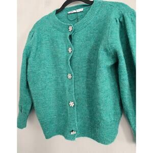 New without tags, Zara Green Rhinestone Flower Button Cardigin S. Beautiful Green knit with Rhinestone flower buttons. Great fall piece