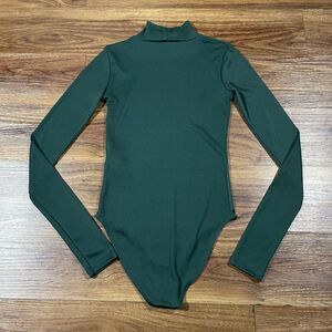 Zara Green Ribbed Long Sleeve Mock Neck Bodysuit Womens Small Lightweight