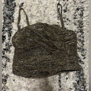 This stylish Zara tank top features a ruched design with a trendy tie front, offering a chic and modern look. The sleeveless crop top comes in a vibrant green color, perfect for adding a pop of color to your wardrobe. Its form-fitting silhouette and contemporary style make it an ideal choice for casual outings or a night out.