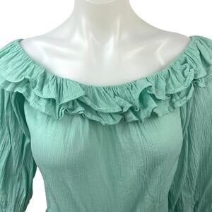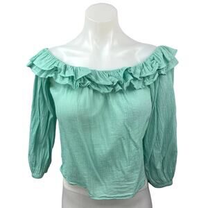 Zara Green Ruffle Tiered Off The Shoulder 3/4 Sleeve Crop Blouse Top Size S