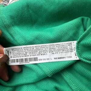 This elegant green blouse from Zara features a sleeveless design with charming ruffled details, perfect for adding a touch of sophistication to any outfit. The soft fabric drapes beautifully, making it a versatile addition to your wardrobe.