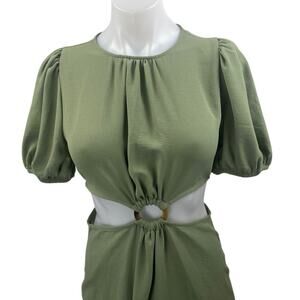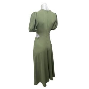 Zara Green Short Puff Sleeve Cutout Waist Crew Neck Maxi A Line Dress Size XS