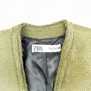 Zara Green Shoulder Pad Structured Tweed Open Blazer Size XS