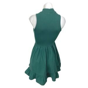 Zara Green Sleeveless Ribbed Knit Turtleneck Ruffle Fit & Flare Mini Dress Sz S