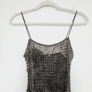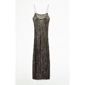 Zara Green Textured Sheer Mesh Knit Maxi / Midi Dress Spaghetti Strap Small