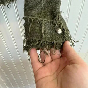Zara Green Textured Weave Zip Jacket Distressed, Stud Detail small H53